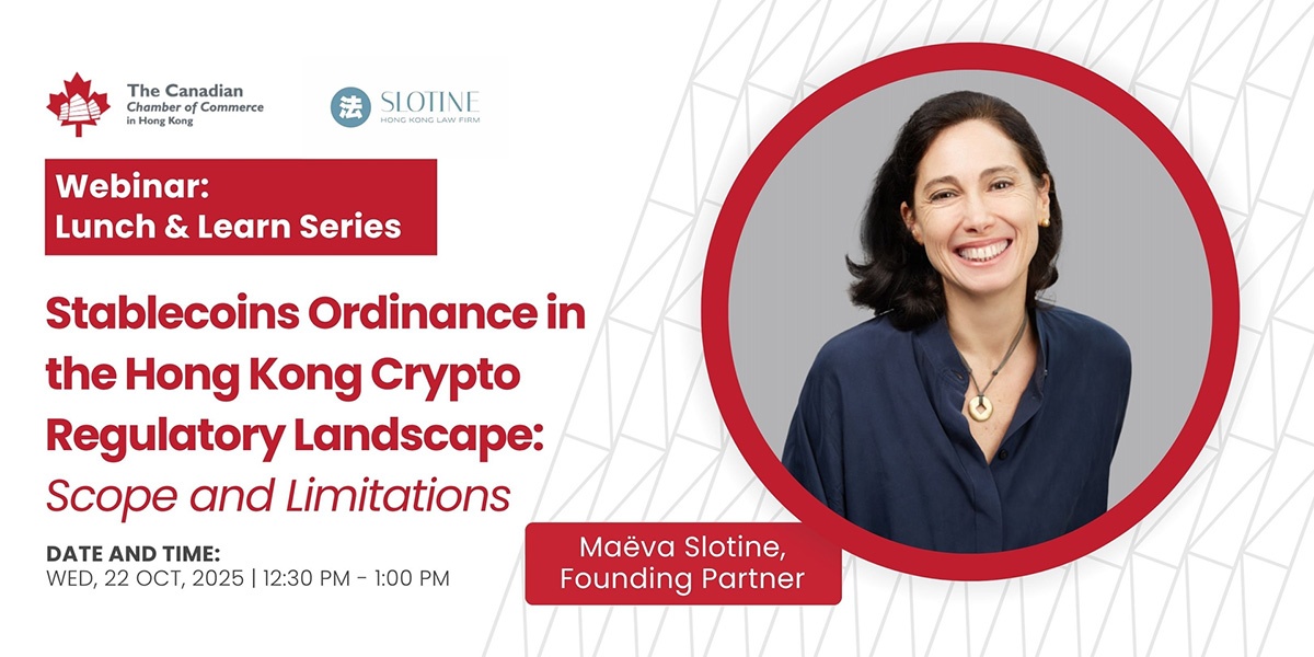 Join The Canadian Chamber of Commerce for an engaging session with Maeva Slotine – Founding Partner, Slotine. She’ll discuss Stablecoins Ordinance in the Hong Kong Crypto Regulatory Landscape: Scope and Limitations.